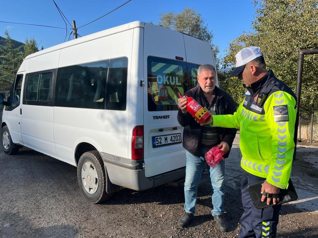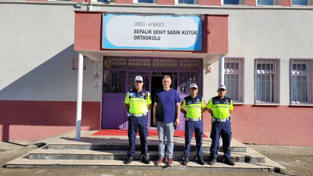Aybastı İlçe Jandarma Komutanlığı trafik ekipleri tarafından okulumuza öğrenci taşıyan servislerin kontrolü yapıldı.