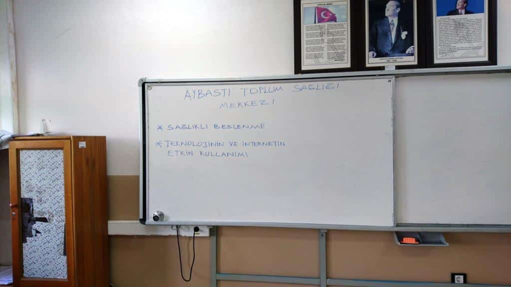 Aybastı Toplum Sağlığı Merkezinden gelen Ebe Sayın Saliha EM tarafından öğrencilerimize "sağlıklı beslenme ve teknolojinin ve internetin etkin kullanımı" hakkında bilgiler verildi.